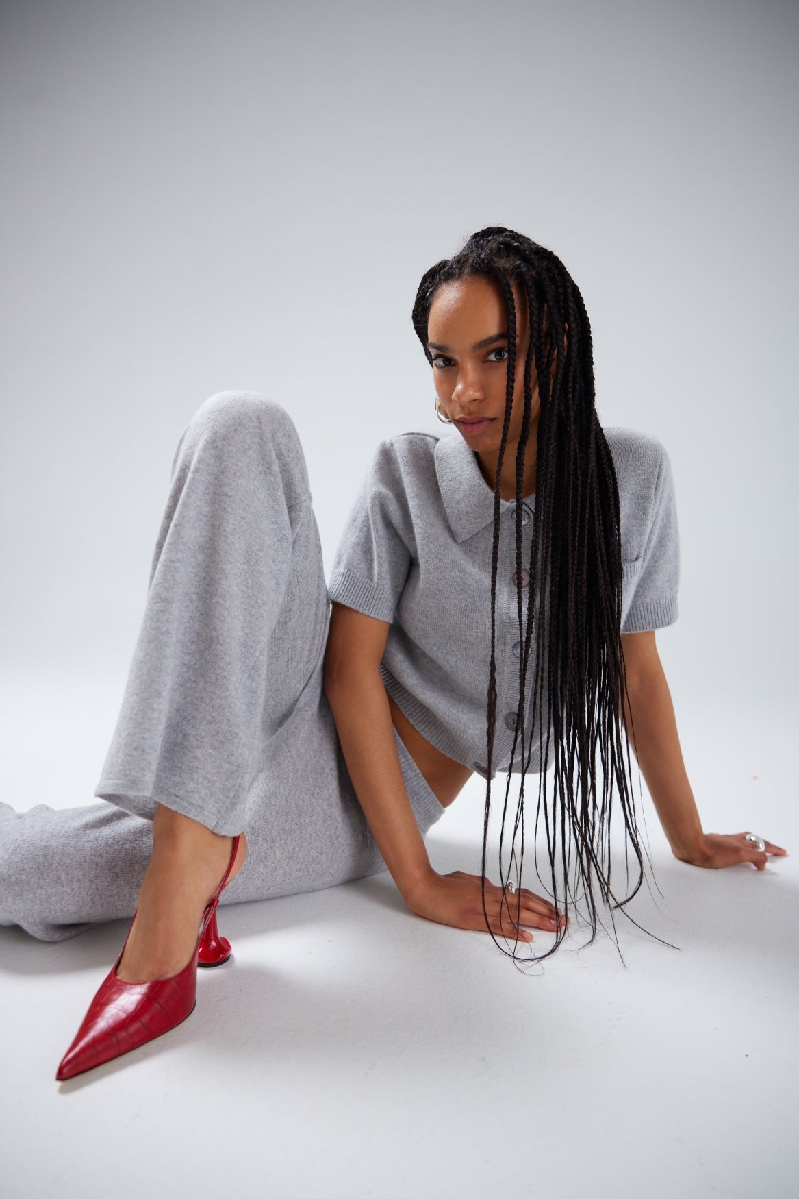 Harmony is our short-sleeve cashmere shirt in a refined chunky gauge, cut with a relaxed boxy fit and clean crew neckline. Pure long-haired cashmere gives her weight without bulk, softness without slouch — the kind of piece that elevates even the simplest look.