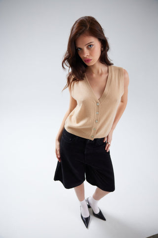 Jada Button Up Tank proves simple is powerful ~ breathable pure cashmere and a confident cut for a piece you’ll reach for on repeat. Clean and close to the body without feeling tight.