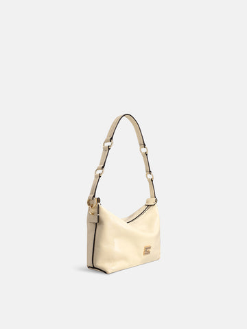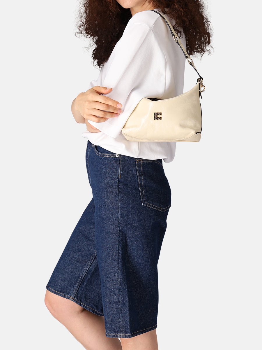 Lightweight yet thoughtfully sized, it carries your essentials without ever feeling bulky. Wear it on the shoulder for a refined look, carry it by hand via its integrated handle with a subtle metal ring, or opt for hands-free ease with the detachable, adjustable crossbody strap.